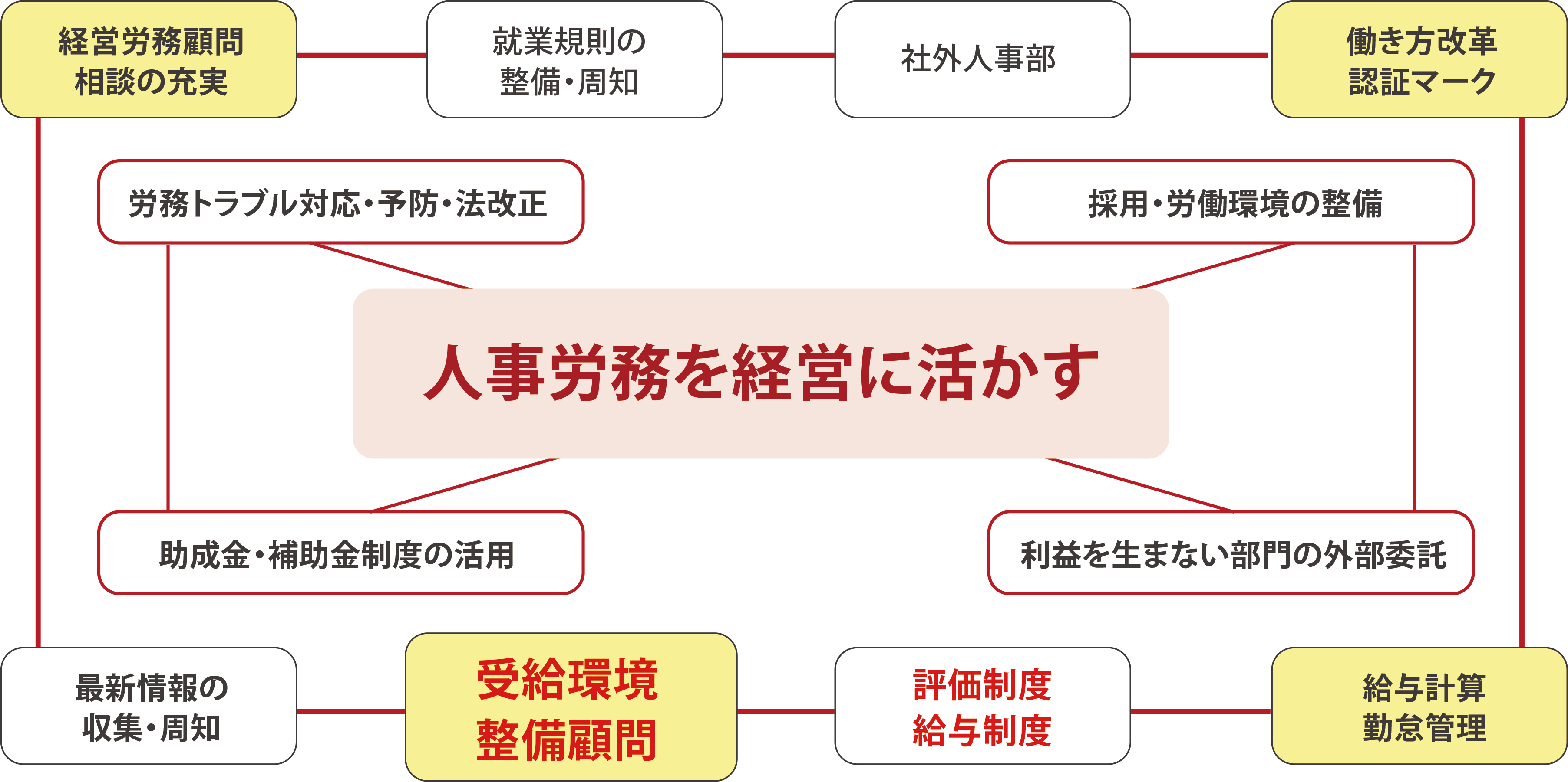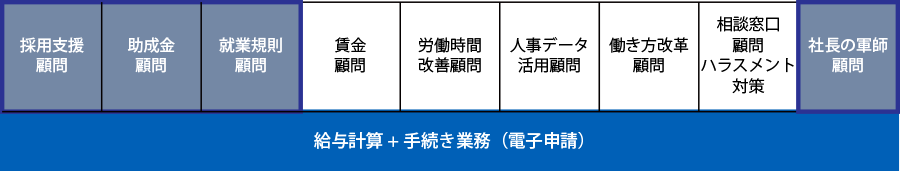 顧問契約の原則は、人事労務管理のアドバイス業務です。付随して、助成金や就業規則の対応等があると考えています。
