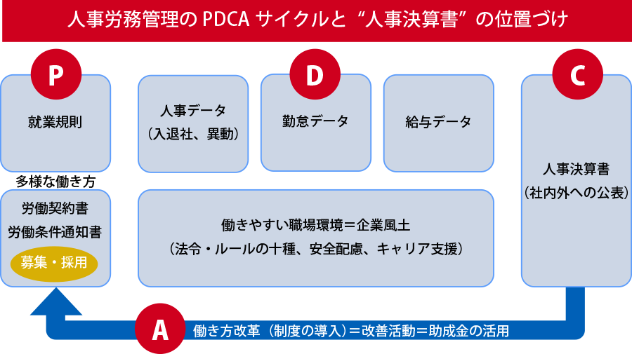 1年を通した、人事労務の結果を「人事決算書」というツールを用いて、整理分析し御社の労務管理の問題点を把握することで、人事労務戦略を立てることが可能になります。 人出不足時代には、この「人事決算書」を活用した「人事労務戦略」を練ることが、お金の決算書以上に必要になるかと思います。